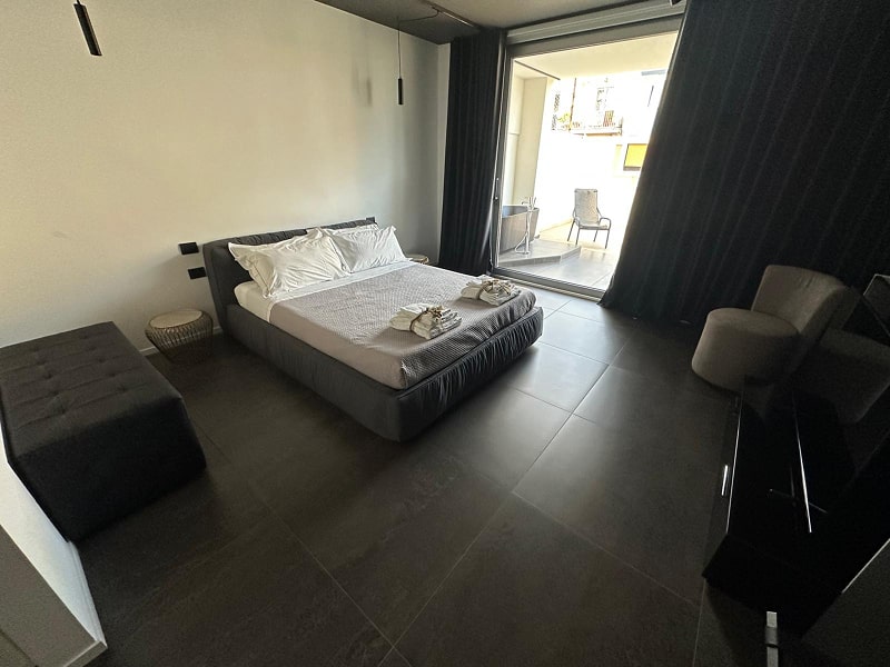 Diamond Suite, è una spaziosa camera matrimoniale dotata di aria condizionata, pareti insonorizzate, balcone con vista sul cortile interno e bagno privato con cabina doccia. L'unità dispone di 1 letto matrimoniale.